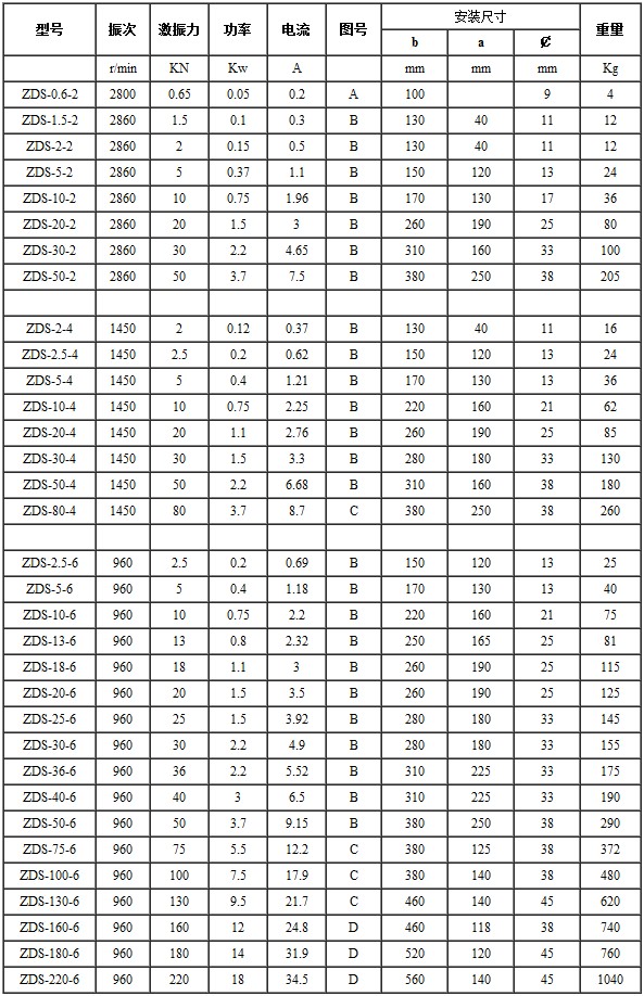 产品简介: ZDS系列振动电机设计先进、重量轻、体积小、使用和维修方便。 •利用平稳回转产生振动,激振效率高,噪声低,使用寿命长。 •全封闭结构,可在任何无防爆要求的粉尘条件下工作。 •只需调节偏心块夹角,可无级调整激振力。 •可...